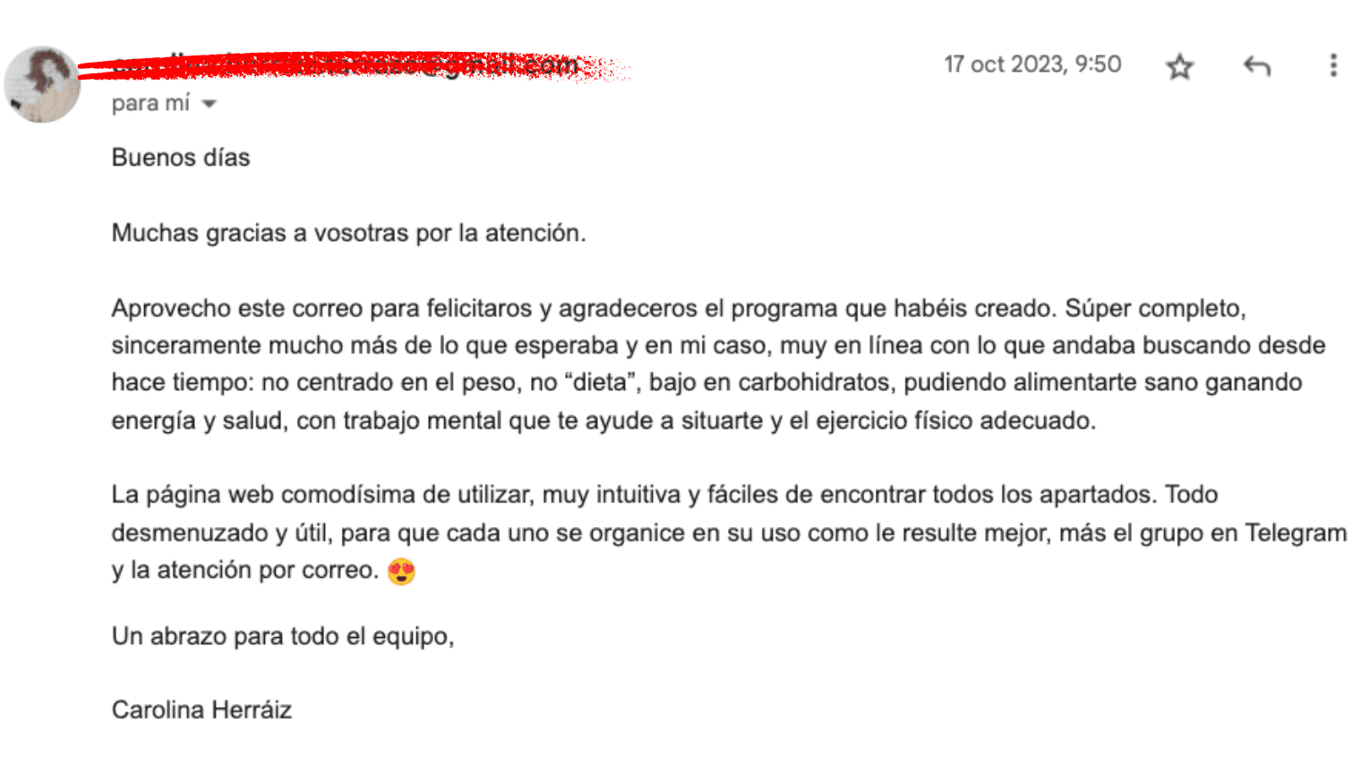 “Las recetas son tan equilibradas que te sientes bien, saciada, activa y con la energía suficiente. No paso hambre, ni estoy hinchada”.