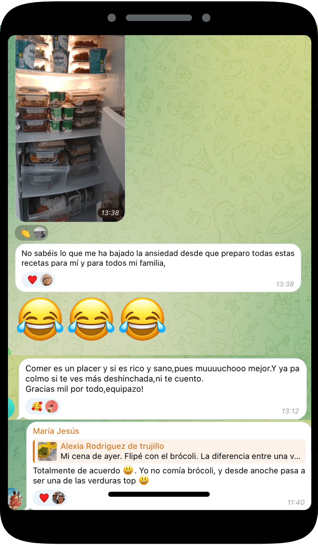 «Para mí es el dinero mejor gastado. Estáis siempre que lo necesitamos. A cualquier cosa nos contestáis de forma casi inmediata. Las comidas son espectaculares, riquísimas y sencillas. Es una alimentación que puedes mantener en el tiempo.»